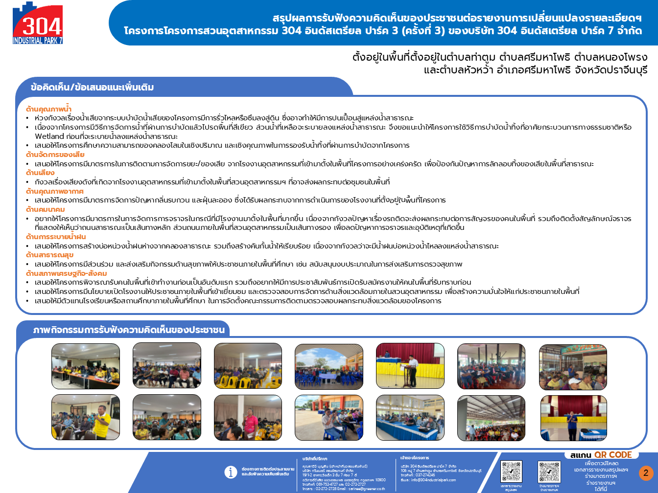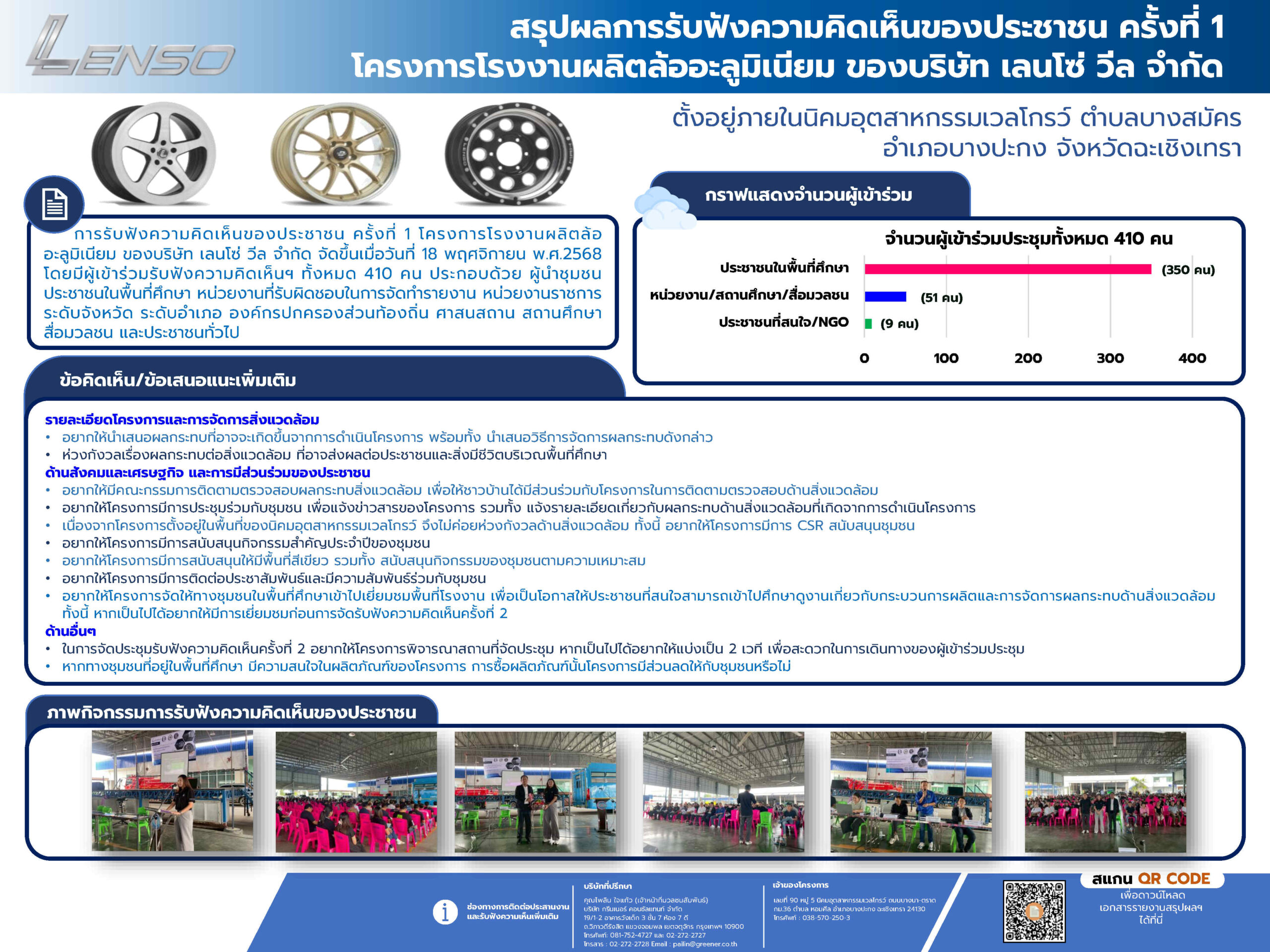 รายงานสรุปผลการรับฟังความคิดเห็นของประชาชน ครั้งที่ 1 โครงการโรงงานผลิตล้ออะลูมิเนียม ของบริษัท เลนโซ่ วีล จำกัด